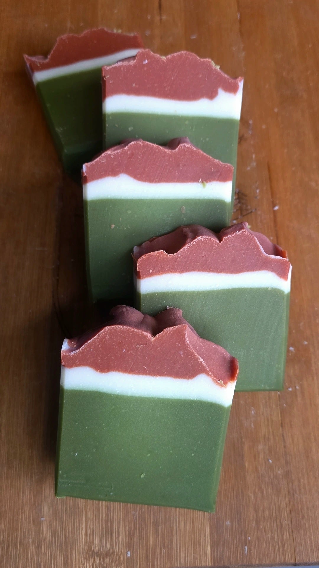 Celebrate the cheeky side of the season with Grinchmas! Made with 100% all-natural grass-fed tallow and scented with zesty lime, bergamot, fir, and peppermint essential oils, this soap awakens your senses while nourishing your skin. With playful layers of green, white, and red, it’s a merry, minty treat that adds a pop of holiday fun to any bath or gift.