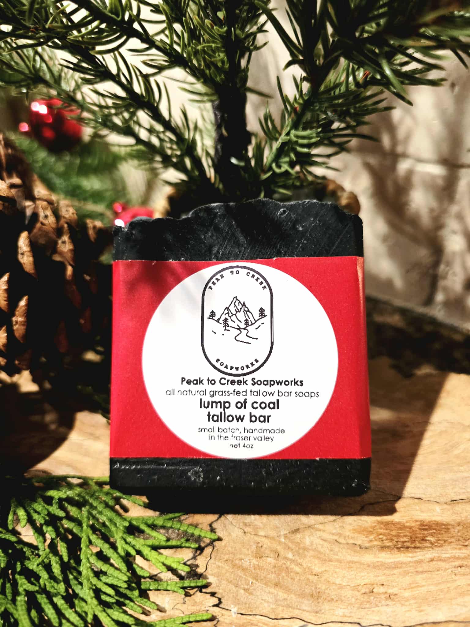 Ingredients: saponified grass-fed tallow, therapeutic-grade essential oil blend of eucalyptus and cedarwood atlas, activated charcoal